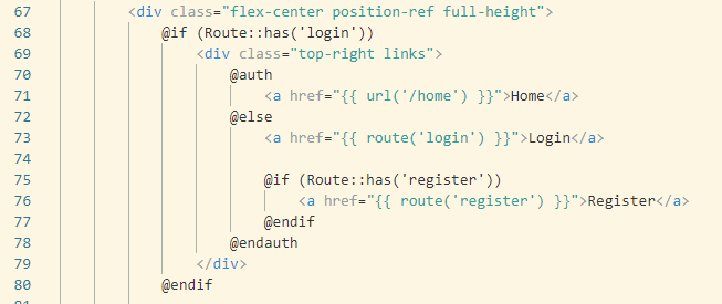さて、今のwelcome.blade.phpの67行目前後にこんな表記があります。