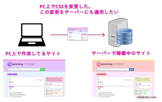 このコードをサーバーにアップして、サイトの変更を適用したいとします。