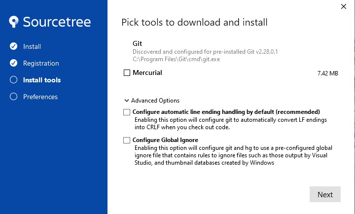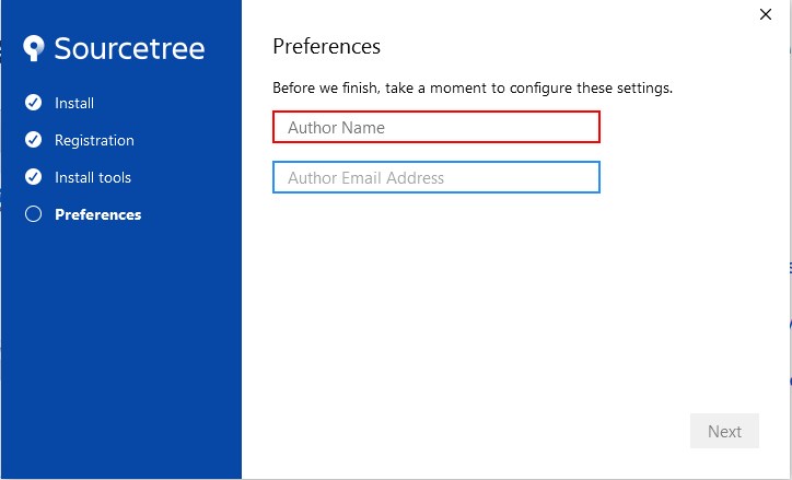 ここまで済んだら、SourceTreeのインストーラー画面に戻ってください。