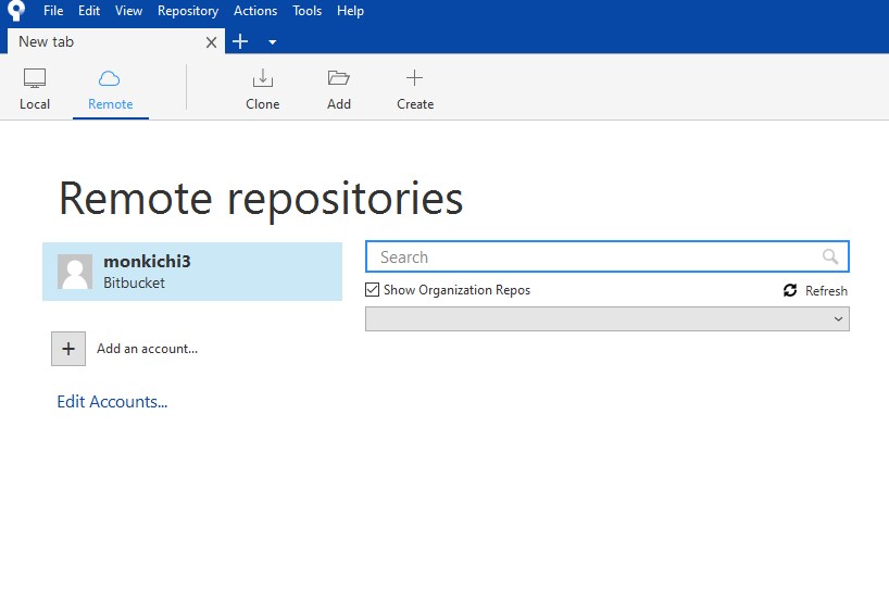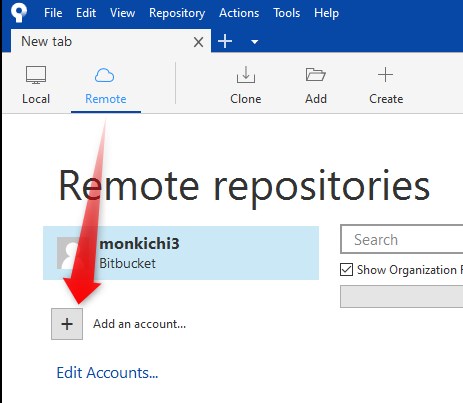 Remoteタブから、Add an accoutをクリックします。
