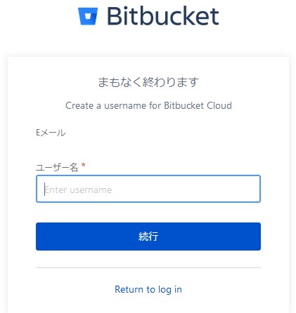 Bitbucket用のユーザー名を自分で考えて入力し、続行を押します。