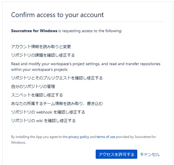 この2つが用意できたら、SourceTreeのインストールを始めます。