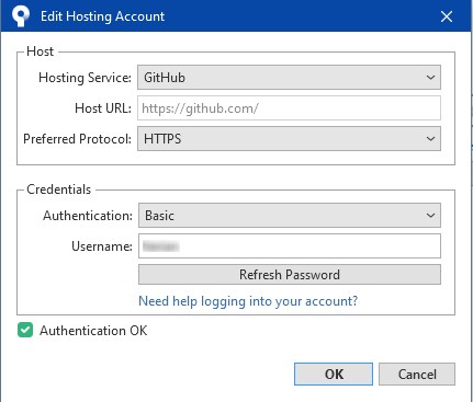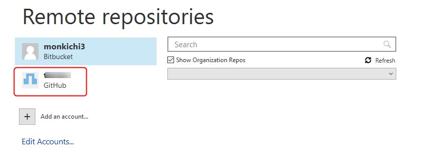 [st-kaiwa1 r]ユーザーネームが入力できない状態の場合は、Refresh Passwordを押すと入力できるようになります。同時にPassword欄も現れると思うので、GitHubでログインに使ってるパスワードを入力して、OKを押します。[/st-kaiwa1]