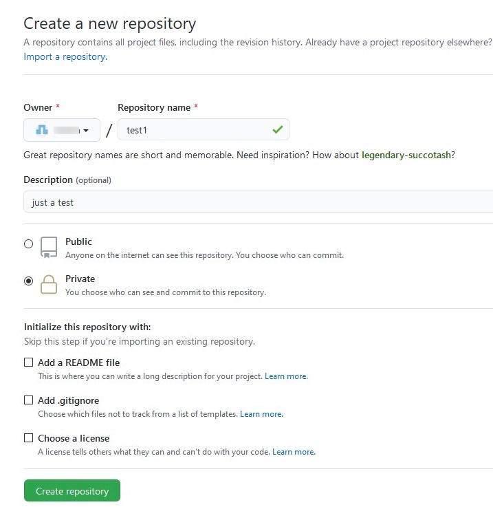 なので、Githubアカウント名と同じでもいいですし、違う名前を考えてもOKです。