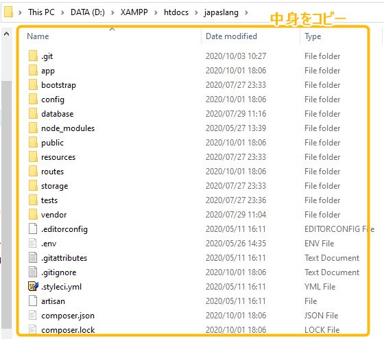上の例だと、Japaslangというサイトの全Laravelデータが入ったフォルダがあり、