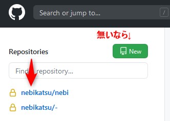 そしてGITHUB側にnebiというリポジトリがあるとします。