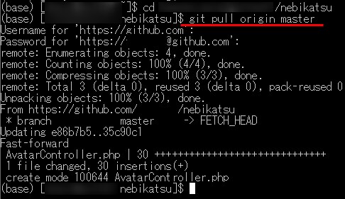 次にgit pull origin master と入力し、Enterします。