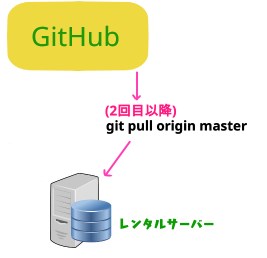 まず、PCからGITHUBにデータをPUSHし、その後、今度はレンタルサーバーからPULLを使って、GITHUBのデータをコピーします。