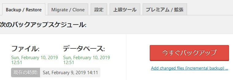 保存先設定が完了したら、その後、Backup/Restoreタブに戻って、今すぐバックアップをクリックし、