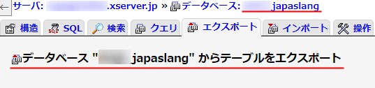 - サーバーのデータベースから一部テーブルのみをエクスポート(バックアップ)
