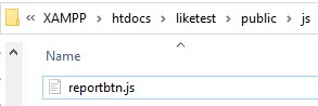 のように呼び出します。赤茶文字のjs/がフォルダ名、reportbtn.jsがファイル名なので、フォルダ名やファイル名を書き換えてください。デフォルト設定だと、asset()でpublicフォルダが呼ばれる仕様になってます。