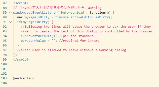 Javascriptをblade内に直書きするなら、