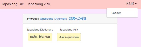 このログアウト用プルダウンメニューが表示されなくなる