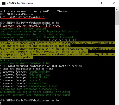 現在のディレクトリ(フォルダ)がLaravelプロジェクトにある事を確認してください。(例:D:\XAMPP\htdocs\samplesite)