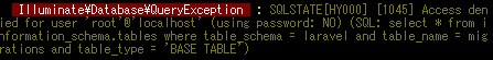 ああ、それは多分まだデータベースを作ってないか、データベースへのアクセス権がLaravelに無い状態。