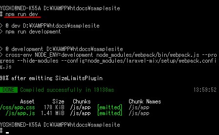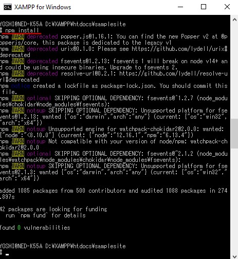 例えば、あなたがPC上(XAMPP上)でLaravelサイトを作成しているなら、PCにまずnode.jsをインストールします。