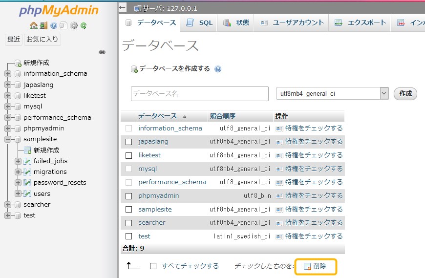 データベースも消したい場合は、単純にphpMyAdminからログインして、データベース削除ボタンで削除すればOKです。