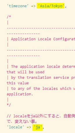 それを、それぞれ、Asia/Tokyo、ja に書き換えて保存してください。