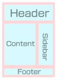 この図のように、ヘッダー、サイドバー、フッターといった部分はどのページでも同じように表示しますが、コンテンツエリアに限っては、HTMLのデザインがページによっては変わるはずです。