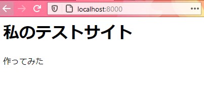 - ブラウザでhttp://localhost:8000/にアクセスしてみます。