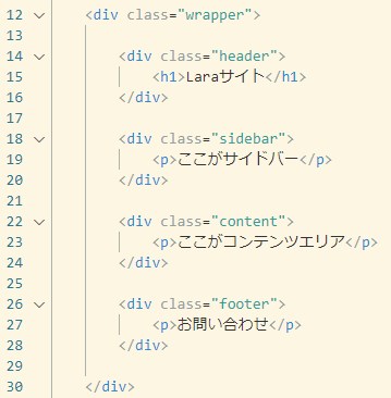 このチュートリアルではまず、サイトの全体のレイアウト(原型)をBladeで自作する方法を解説していきます。