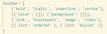 これがQuillの設定になります。先程 <div id=”editor”> と書きましたが、