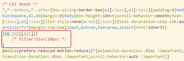 CSS Resetの中にfilter:blurがあるので、その部分を改行した後、コメントアウトすれば、