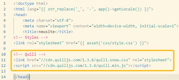 この</head>の手前に書いた黄枠部分でQuill本体を読み込んでます。