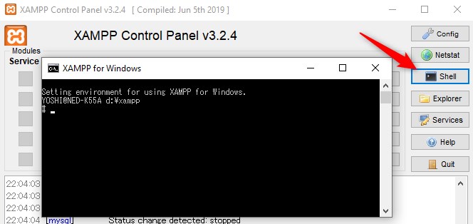 先程のコマンドプロンプトに今度は、