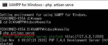 php artisan serve と入力、Enterしてください。