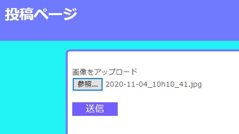 そして、これを送信すると、/newimgsendというURLに飛ばされ、