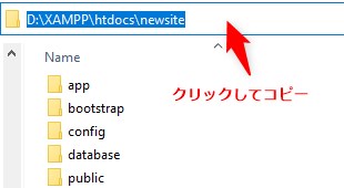 このように、LaravelプロジェクトフォルダのパスをCtrl+cでコピーします。