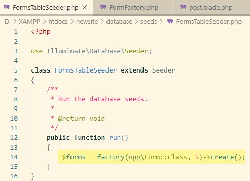 database\seedsフォルダを開くと、FormsTableSeeder.phpが出来てるはずです。