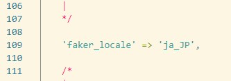 そこで、109行目辺りにあるfaker_localeを探して、en_USをja_JPに書き換えて、上書き保存してください。