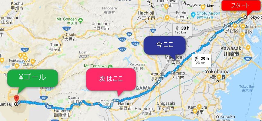 なので、ちゃんと一直線で稼ぐためにGoogleマップで検索したルート地図のようなものを思い浮かべて、