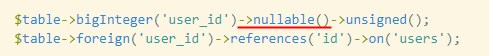 つまり、foreign_keyを作る時も、integerではなく、bigIntegerを指定しないとエラーになります。