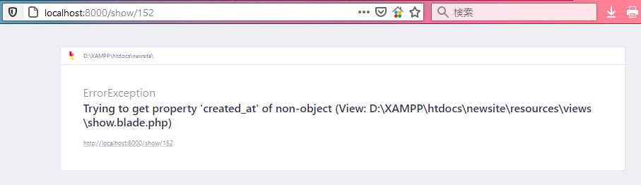 Trying to get property ‘created_at’ of non-object (View: D:\XAMPP\htdocs\newsite\resources\views\show.blade.php)
