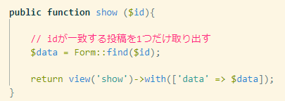 Laravelでコントローラーからデータベースに対してクエリ(検索文)を書く際、便利なクエリに、find()というのがあります。