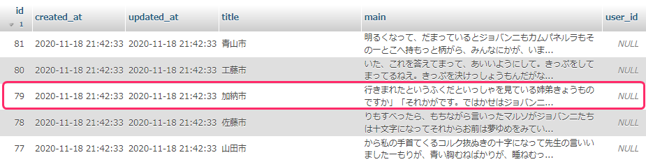 $idの値が79なら、データベースのID79の行データを取り出してくれます。