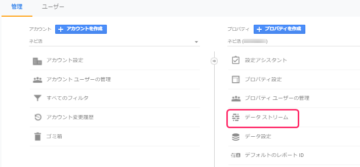 データストリームなんてないよ?って場合は、それは旧アナリティクスのプロパティを開いてるって事です。