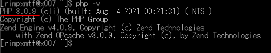 次に、SSH接続したら、そのまま php -v と打ってみてください。