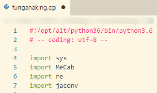 前項同様、ファイルの拡張子は基本的には .pyを.cgiにする事で動きます。