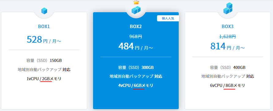 ColorfulBoxが、他社レンタルサーバーと大きく違う特徴として、メモリとCPUを厳格に分けているというのがあります。(Mixhostも同様に厳格に分けています)