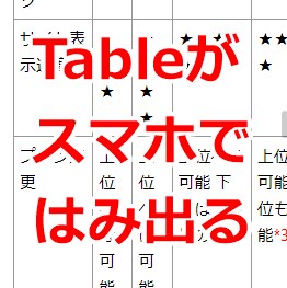 ブログやウェブサイトでtableを使う場合、 スマホだと表示がよくはみ出てしまうので、 通常は、table幅を width:100% と...