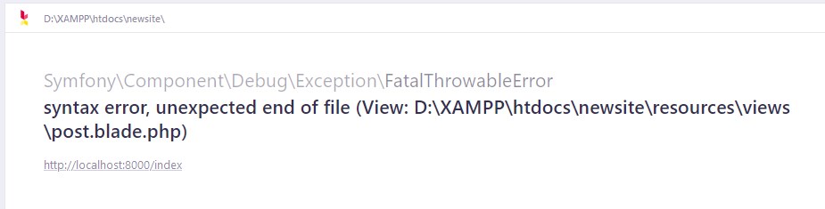 syntax error, unexpected end of file というエラーがLaravelで出た場合、 Symfony...